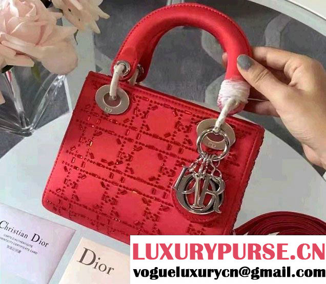 Lady Dior Mini/Small Bag with Crystal Embellishments Red 2017