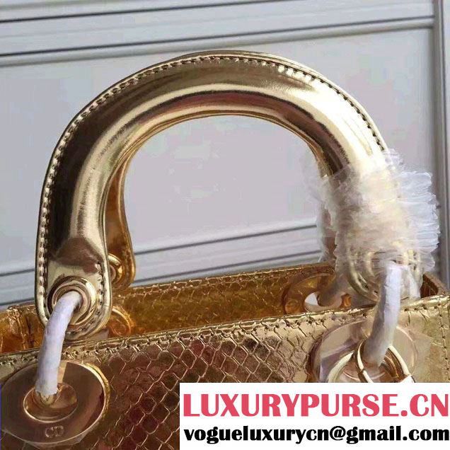 Lady Dior Python Small/Mini Bag with Double Chain Strap Gold 2017