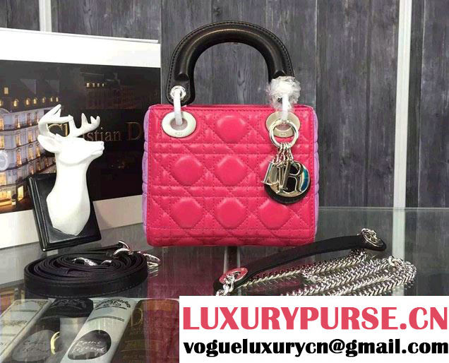 / Lady Dior Small Bag with Adjustable Strap in Lambskin Leather Fuchsia/Black/Lavender 2015