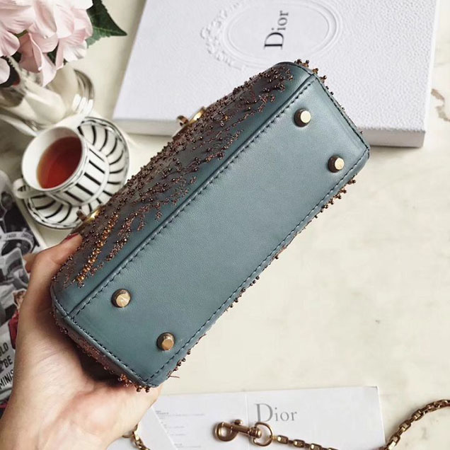 Limited Edition Lady Dior I Feel Blue Bag 17cm Aged Gold Hardware Calfskin Leather Fall Winter 2017 Collection Gray
