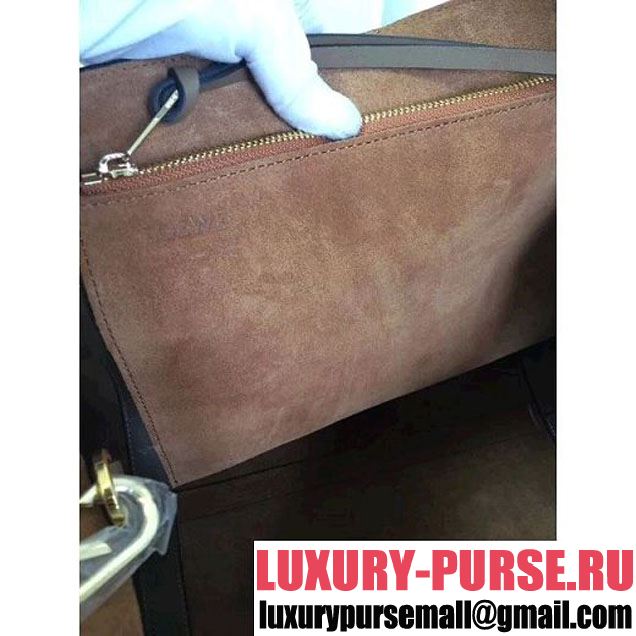 Key features: white stitching, gold Suede lining, branded metallic triangle closure, zipped inside, hand-painted edges, bottom studs, gold hardware