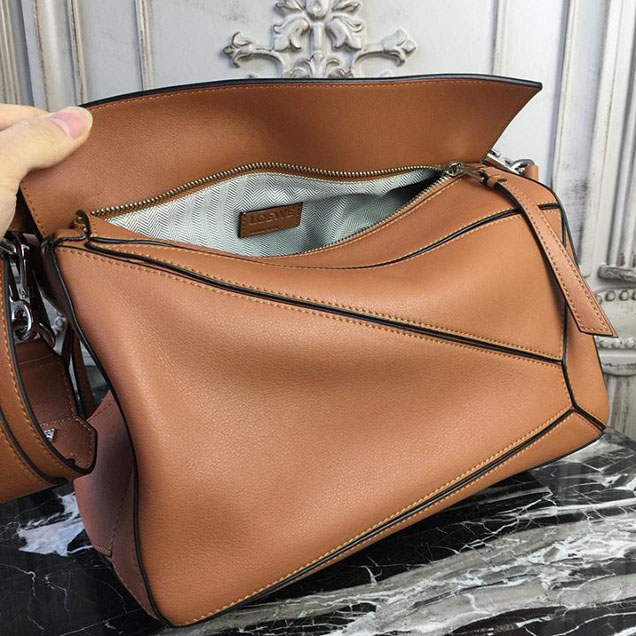Loewe Puzzle Colorblock Satchel Bag 29cm Calfskin Leather Spring Summer 2018 Collection Tan