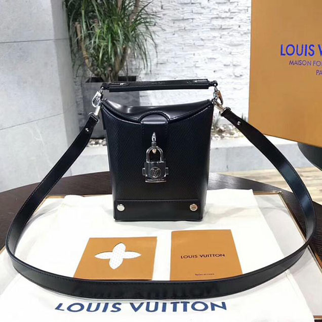 With its architectural lines and unique construction, the Bento Box ranks high among the most coveted bags from Cruise 18, This day-to-evening version in sleek black Epi leather can be styled in a variety of ways, thanks to a top handle and a long, removable strap.