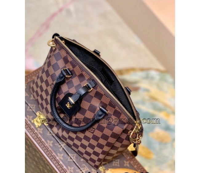 The elegant and body-friendly Odeon Tote PM bag is made from Damier Ebène canvas and finished with a luggage tag, top handles, and a removable strap, all in black leather. The roundness of the design and the sophisticated pleats bring a feminine feel. This smaller version of the Odeon Tote is the perfect casual chic alternative.