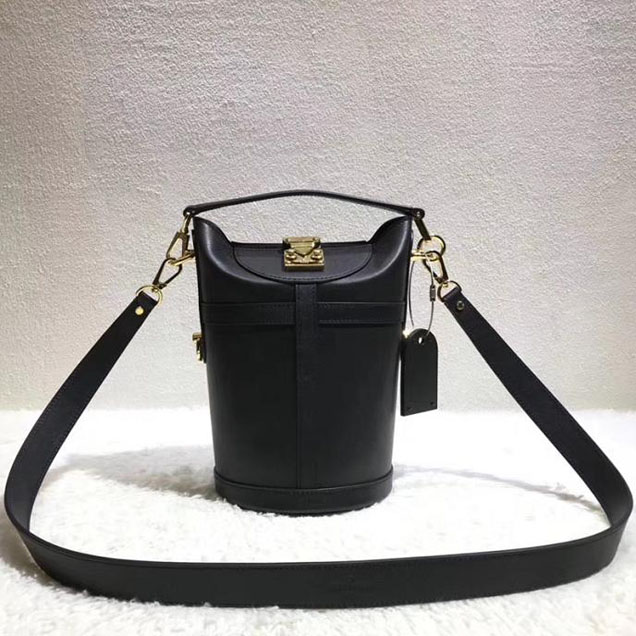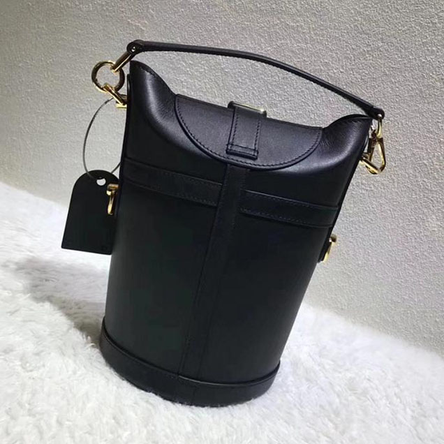 Nicolas Ghesquiere revisited the classic bucket shape for SS 18 and the result is the Duffle, a collectible jewel of a day-to-evening bag. Fashioned of black Cuir Orfevre calf, it features a finely wrought S-Lock and a removable strap for over-the-shoulder wear. Size: 8.5 x 9 x 5.5 inches / 22cm x 23cm x 14cm (Length x Height x Width) Detailed Features: - Cuir Orfevre calfskin leather - Cuir Orfevre calfskin leather trim - Microfiber lining - Gold-color metallic pieces - 1 leather handle - Iconic S-lock clasp - Removable leather strap You may also likeRelated ProductsNew Products For December