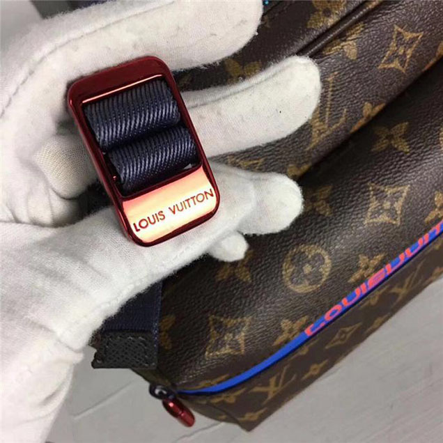 Featuring the new technical, sports-inspired feel unveiled by Kim Jones at the 2018 Spring-Summer Show, this Messenger Monogram Outdoor mixes classic Monogram coated canvas with sports webbing, scuba zips, cording and blue and green colored metallic pieces. Easy and functional crossbody shape.