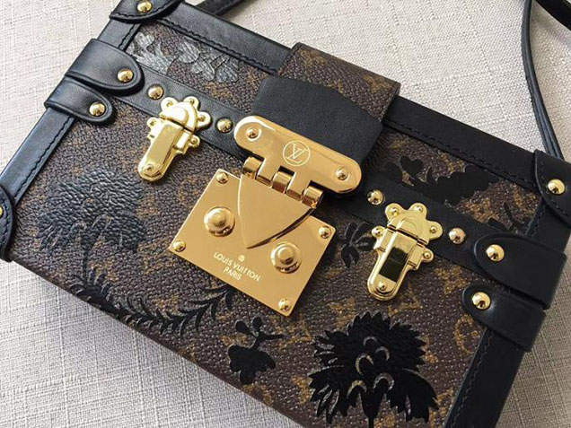 A key story for SS 18, Monogram Blossom brings an arty new mood to the House's iconic canvas. The flower appliqus in smooth black calfskin lend this Petite Malle an edgy allure. Inside, the luxe sheepskin lining features the signature Malletage pattern. Size: 7.9 x 4.7 x 2.2 inches / 18.5cm x 12cm x 4.5cm (Length x Height x Width) Detailed Features: - Monogram coated canva - Calfskin leather trim - Sheepskin lining with Malletage print - Gold-color metallic pieces - Removable, adjustable leather strap - Iconic S-lock clasp - Magnetic closure You may also like