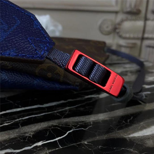 Featuring the new technical, sports-inspired feel unveiled by Kim Jones at the 2018 Spring-Summer Show, this Small Pouch mixes classic Monogram canvas with Pacific Monogram and Taiga leather with colored metal hardware inspired by climbers' carabiner clips.