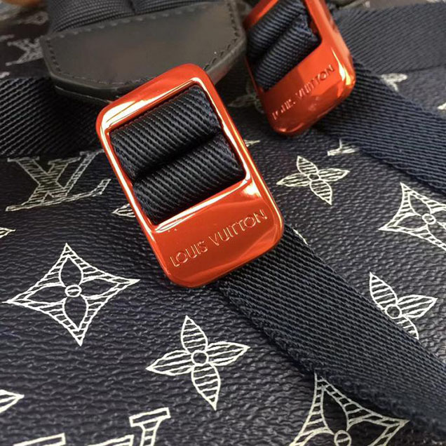 Created for the Men's 2018 Fall Pre-collection, the Discovery Backpack in Monogram Ink canvas has a sporty silhouette, inspired by trekking gear. Boldly accented with pink and navy hardware, this model is equipped with comfortable textile straps, a top handle and multiple pockets. A stylish choice for men on the go.