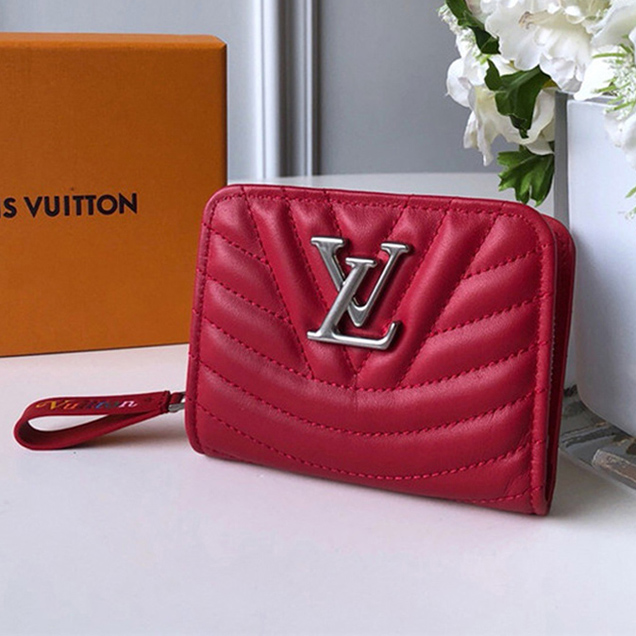 / Louis Vuitton New Wave Zipped Compact Wallet M63790 Red Smooth Calf Leather