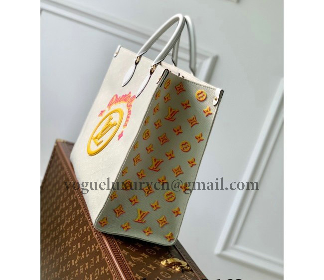 / Louis Vuitton Onthego GM Tote Bag in White Jacquard Fabric M20815 Yellow 2022