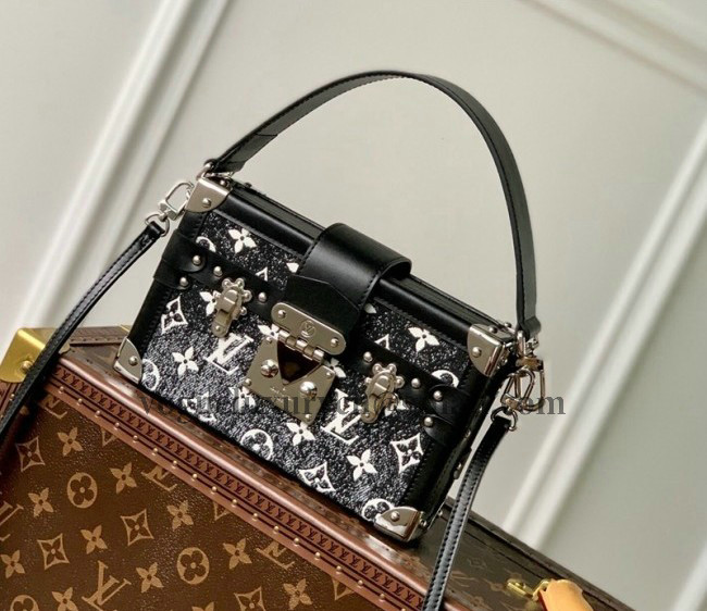 / Louis Vuitton Petite Malle Trunk Bag in Black Faded Denim Jacquard M59363 2022