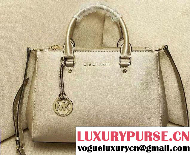Michael Kors Sutton Saffiano Leather Satchel Tote Bag Gold 2015