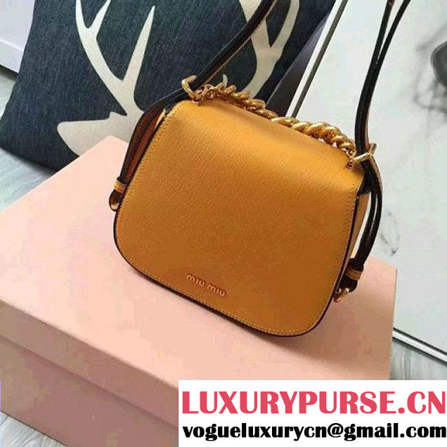 Miu Miu 5BD019 Small Calf Leather Dahlia Shoulder Bag Yellow 2016 (1B033-6080110 )