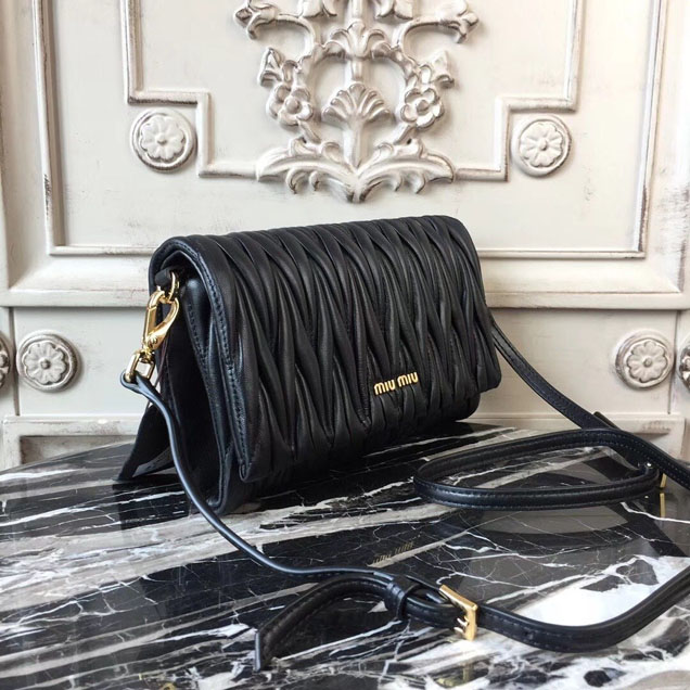 Miu Miu Matelasse Shoulder Bag 5BH080 Nappa Calfskin Leather Spring Summer 2018 Collection Black