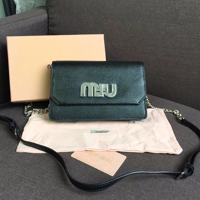 Miu Miu Miu Logo Bag Shoulder Bag 5BH077 Madras Calfskin Leather Spring Summer 2018 Collection Black