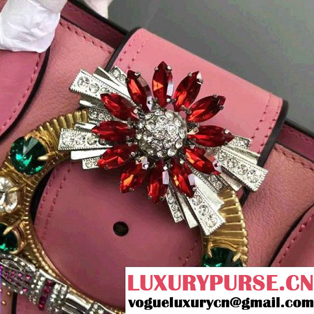 Miu Miu Studded Goatskin Top Handal Bag With Jeweled Buckle 5BA043 2017