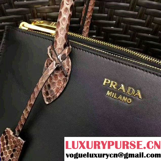 Prada 1BA102 Calf Leather Paradigme Bag With Python Handle 2017