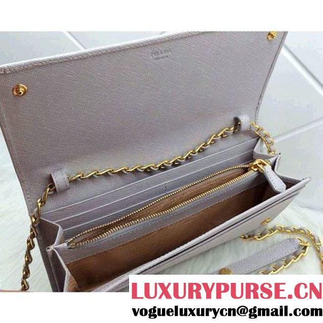 Prada 1M1290 Saffiano Metallic Gold Flap Wallet Size:21*10cm Extractable leather and chain shoulder strap Gold-plated hardware Metal lettering logo Snap closure Six credit card slots One coin compartment with zipper Four documents
