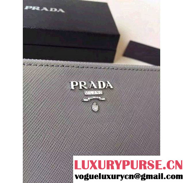 Prada 1ML506 Saffiano Metallic Silver Leather Wallet