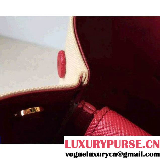 Prada BN2887 Hemp Fabric Tote Beige+Red 2015 (2A016-062201 )