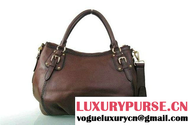 / Prada BR4579 Grained Calf Leather Tote Bag Brown