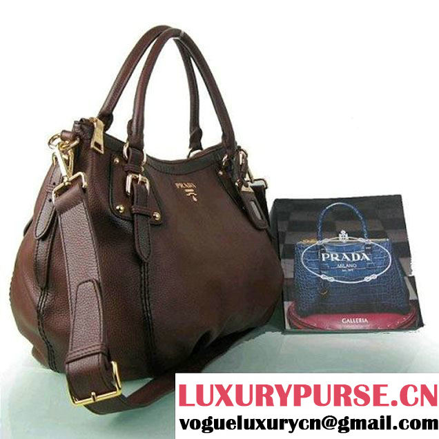 Prada BR4579 Grained Calf Leather Tote Bag Brown