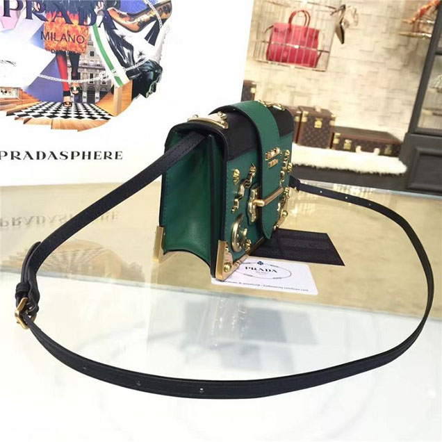 Prada Cahier Astrology Shoulder Bag Calfskin Leather 18cm Fall Winter 2016 Bag Collection Green Black