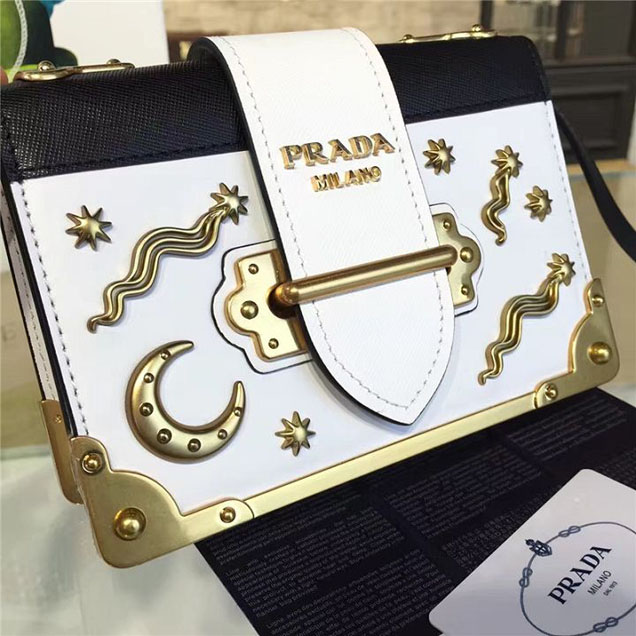 Prada Cahier Astrology Shoulder Bag Calfskin Leather 18cm Fall Winter 2016 Bag Collection White
