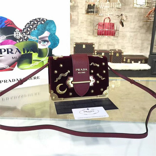 Prada Cahier Calf Leather And Saffiano Leather Clutch Bag 1BF048 Red/Black 2017