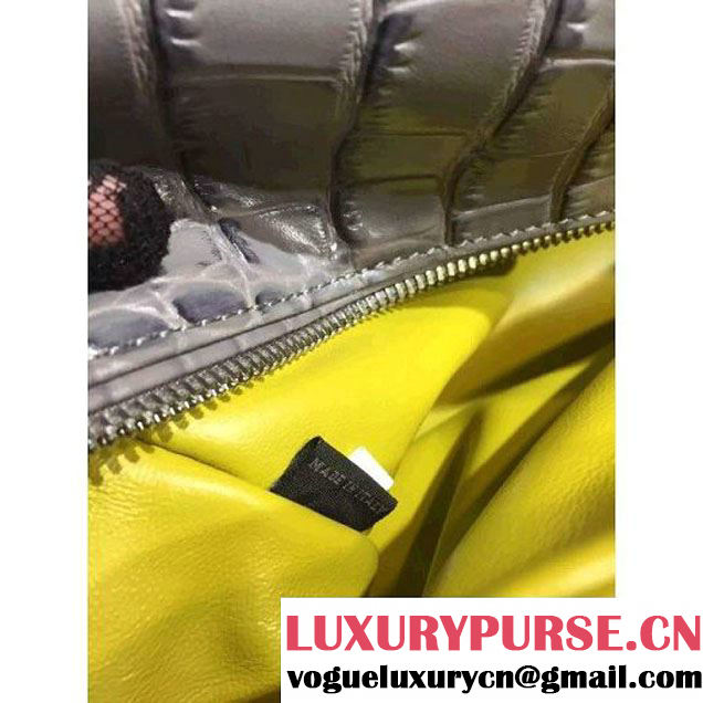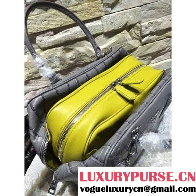 Prada Calfskin Crocodile Pattern Medium Inside Top Handle Bag Marble+Yellow Fall 2015 (2A193-110623 )