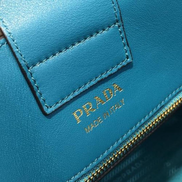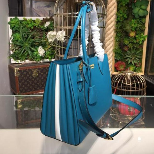 Prada City Calf Bibliotheque Tote 32cm Bag 1BG098 Calfskin Leather Spring/Summer 2018 Collection, Blue/White
