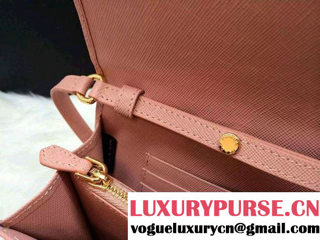 Prada Saffiano Leather Bow Wallet with Shoulder Strap 1M1437 Nude Pink 2015/2016