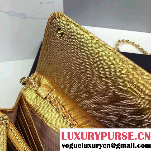 Prada Saffiano Leather Flap Chain Shoulder Wallet 1M1290
