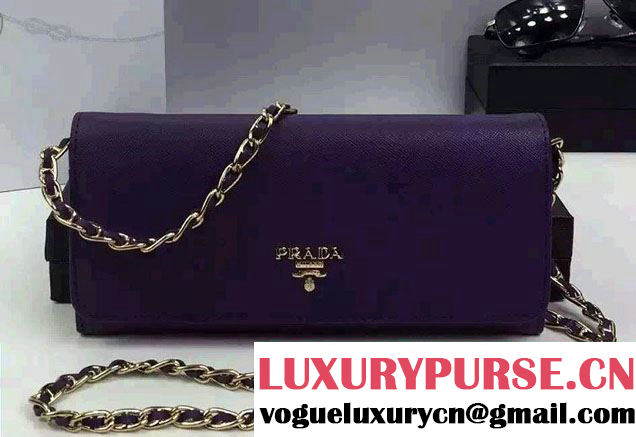 Prada Saffiano Leather Flap Chain Shoulder Wallet 1M1290