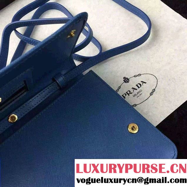 Prada Saffiano Leather Wallet with Shoulder Strap 1M1361 Blue