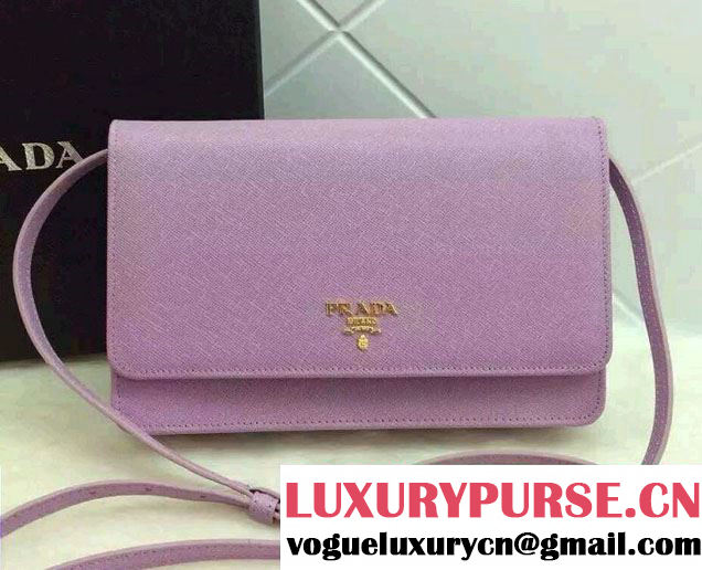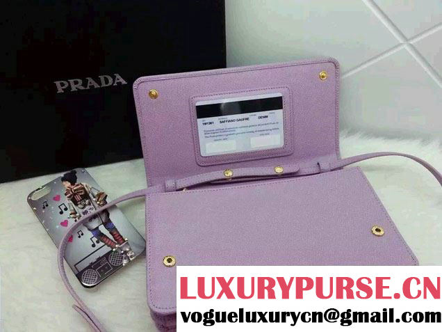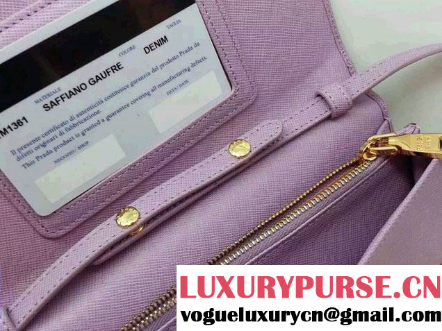 Prada Saffiano Leather Wallet with Shoulder Strap 1M1361 Lavender