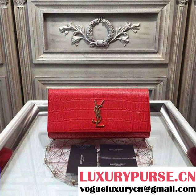 / Saint Laurent 326079 Classic Monogram Clutch in Red Crocodile Embossed Leather (1c113-071764 )