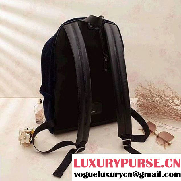 Saint Laurent City Backpack in Velvet and Lambskin 462807 Blue (Nana-8030806 )