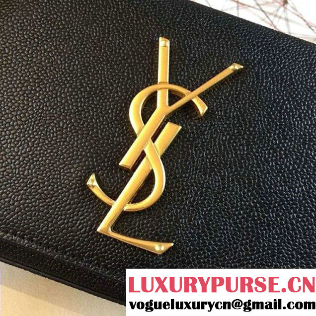 Saint Laurent Classic Small Monogram Saint Laurent Satchelc in Black Grain De Poudre Textured Leather 354121 (JD-062566 )