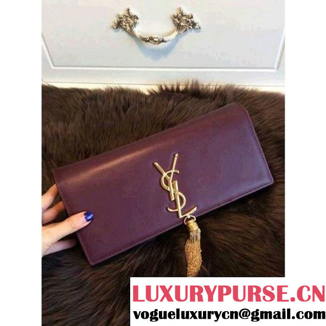 / Saint Laurent Classic Monogramme Tassel Clutch Bag burgundy (no chain) (ysl1594 ) (ysl1594 )