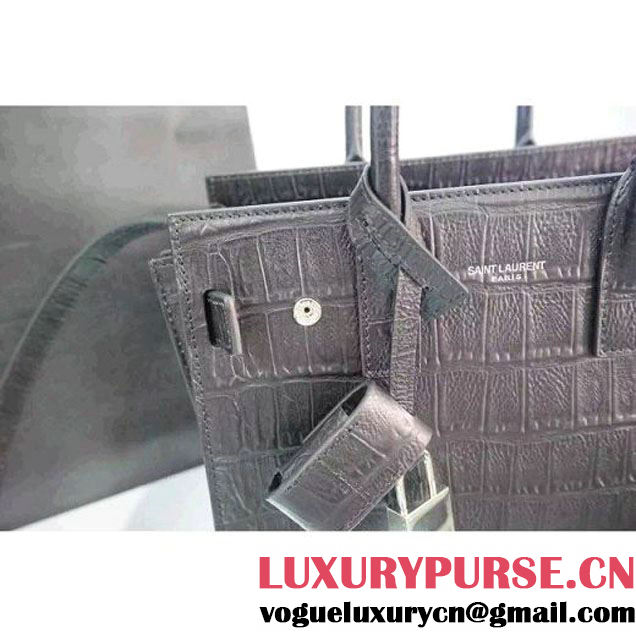Saint Laurent Classic Nano Sac De Jour Bag in Black Crocodile Embossed Leather (1c113-052159 )