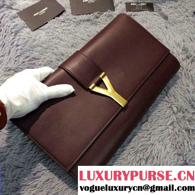 / Saint Laurent Classic Y Clutch in Brown Leather (JD-030931 )