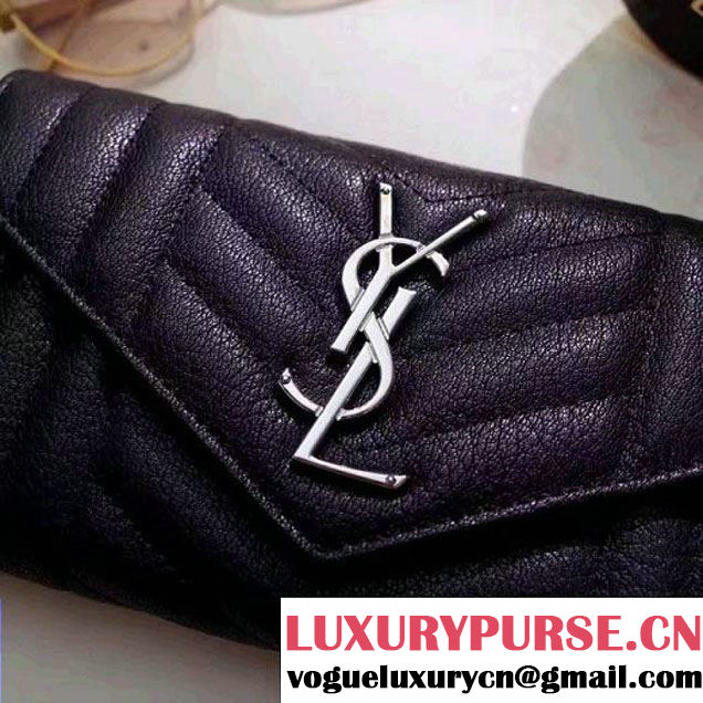 Saint Laurent Large Monogram Flap Wallet In Mixed Matelasse Leather 437469 Black 2017(SH) (1A069-7022326 )