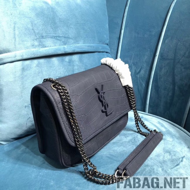 / Saint Laurent Niki Baby Chain Bag in Matte Crocodile Leather 533037 Blue 2019 (2A084-9031609 )