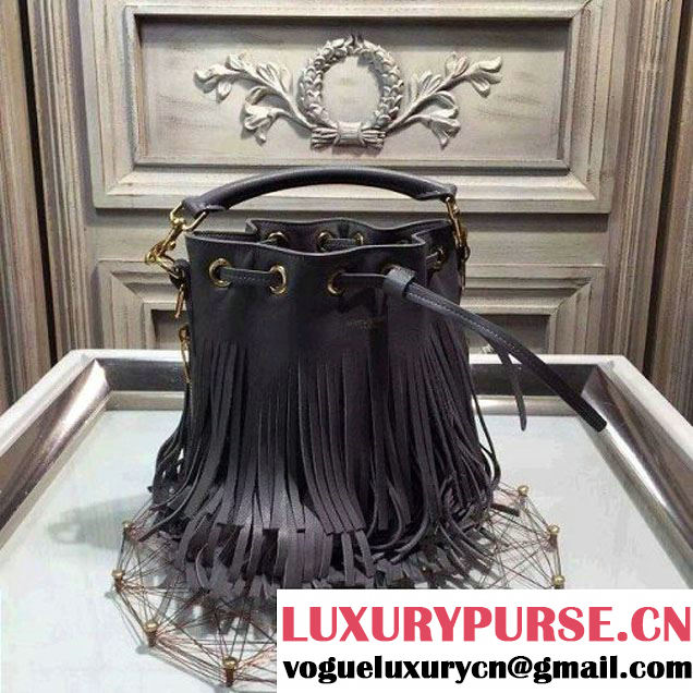 SIGNATURE SAINT LAURENT BUCKET BAG WITH REMOVABLE TUBULAR HANDLE, 3 ROWS OF FRINGES AND REMOVABLE AND ADJUSTABLE SHOULDER STRAP.