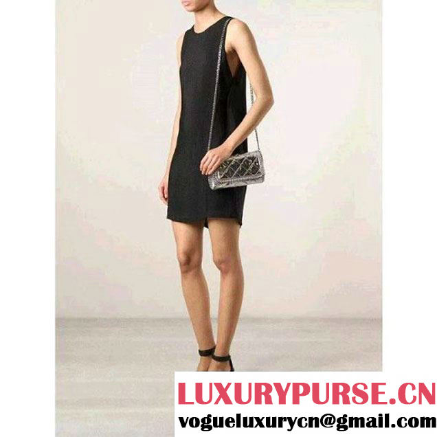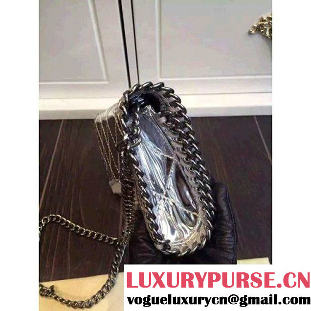 Falabella shaggy deer cross body bag in ice tone featuring a ruthenium diamond cut chain trim and strap.