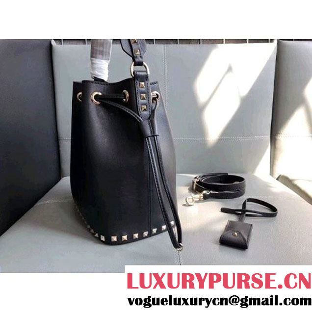 Valentino Calfskin Rockstud Bucket Bag Drawstring Bag Black (JD-8022601 )