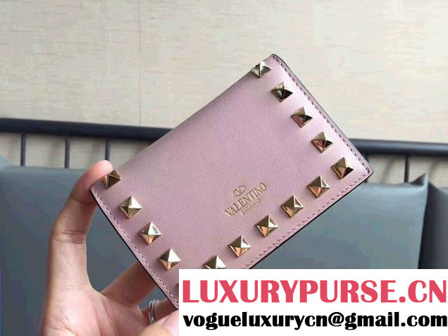Valentino Calfskin Rockstud Flap French Compact Wallet