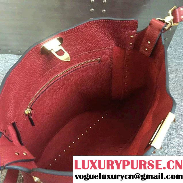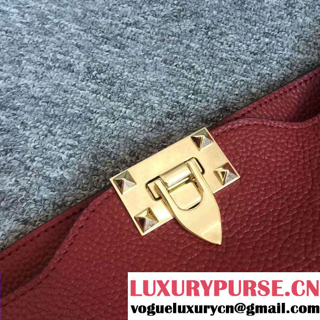 / Valentino Grained Leather Rockstud Messenger Shoulder Small Bag Red 2016